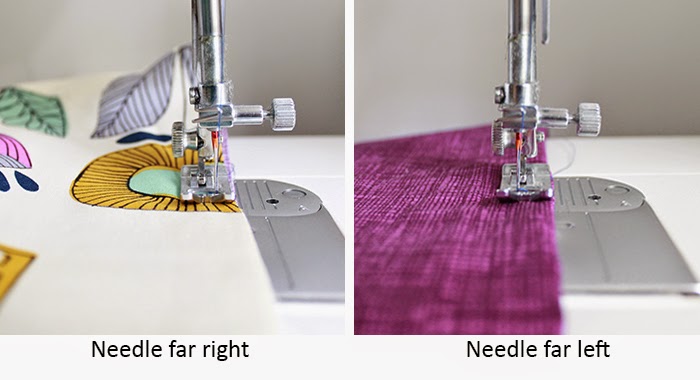 b. Turn the Tote wrong side out and press the side seams flat. Stitch down both sides with a generous ¼" (or a 3/8") seam allowance encasing the raw edges of the seam. QUICK TIP: Sew with the fabric in the ¼" position but move the needle to the far LEFT position for these seams.